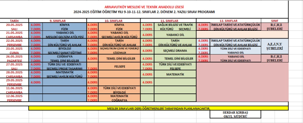 2024-2025 Eğitim-Öğretim Yılı 2.Dönem 2.Yazılı Sınav Takvimi